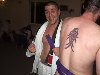 Får man lila bälte ska ryggen också matcha bältet efteråt. Kolla in Adam.