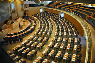 | Lokalen är organiserad för årsmöte. Vi ser helst att några stannar kvar efteråt och hjälper till att bära undan stolarna. |